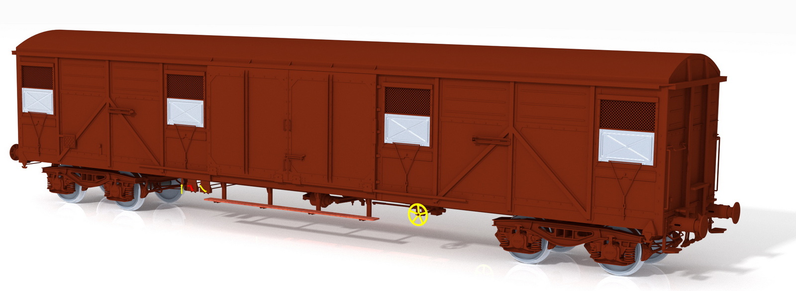 – Gass (G9) couvert à toit haut (4.27m) avec deux portes 3m – bogies Y31